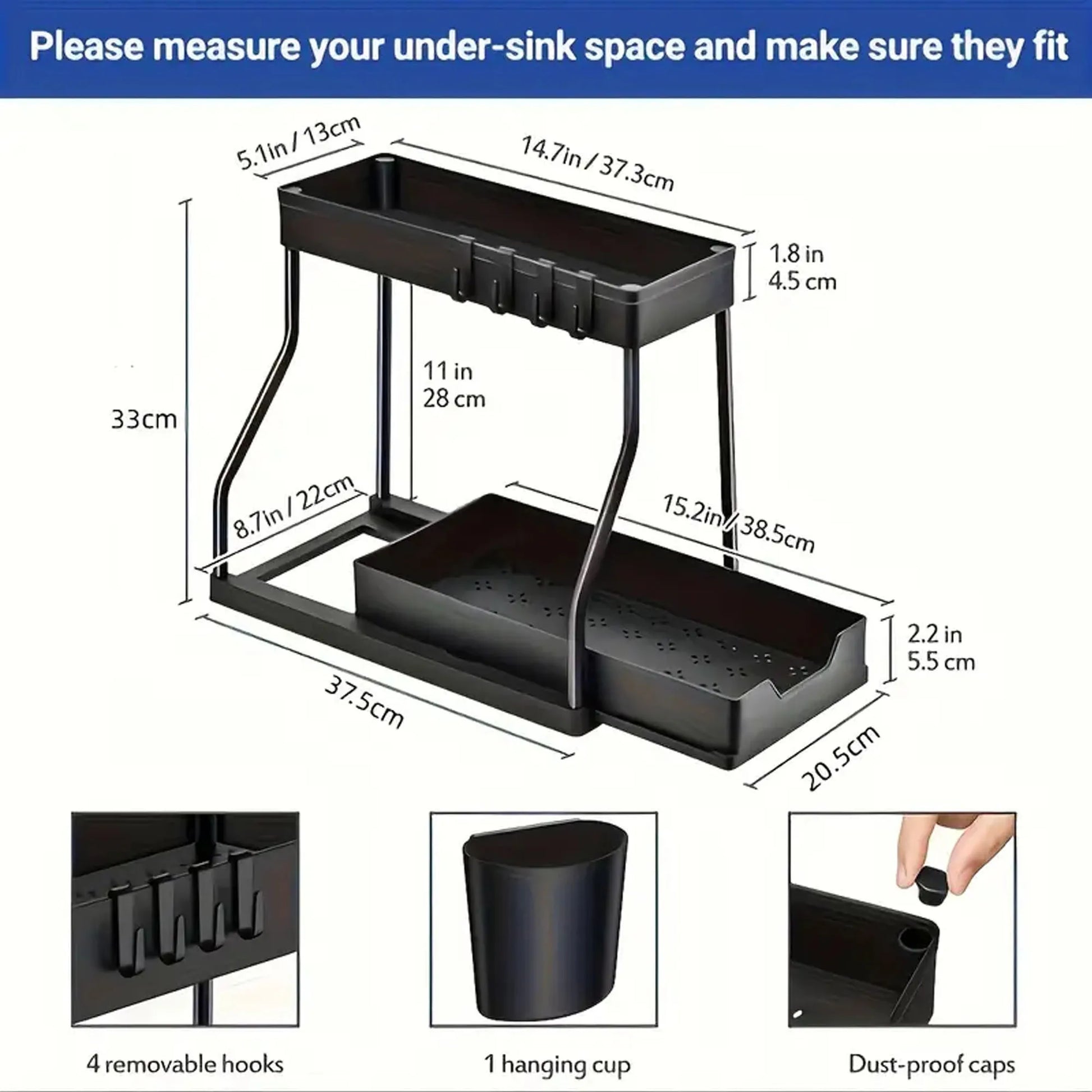1 Piece of Double-Layer Pull-Out Storage Rack for Kitchen Desk and Bathroom under Sink Storage Rack, Multi-Functional R-Shaped Push-Pull Cabinet Storage Rack, Multi-Functional Desktop Bathroom Storage Drawer Organization and