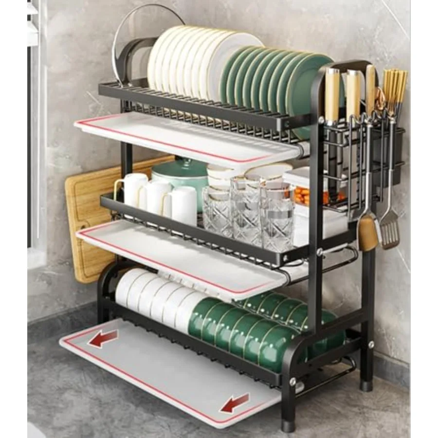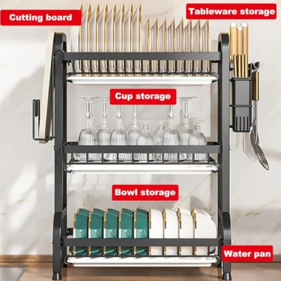 3 Tier Dish Drying Rack Sturdy Carbon Steel Dish Racks for Kitchen Counter Metal Kitchen Organizers and Storage Rack Large Capa