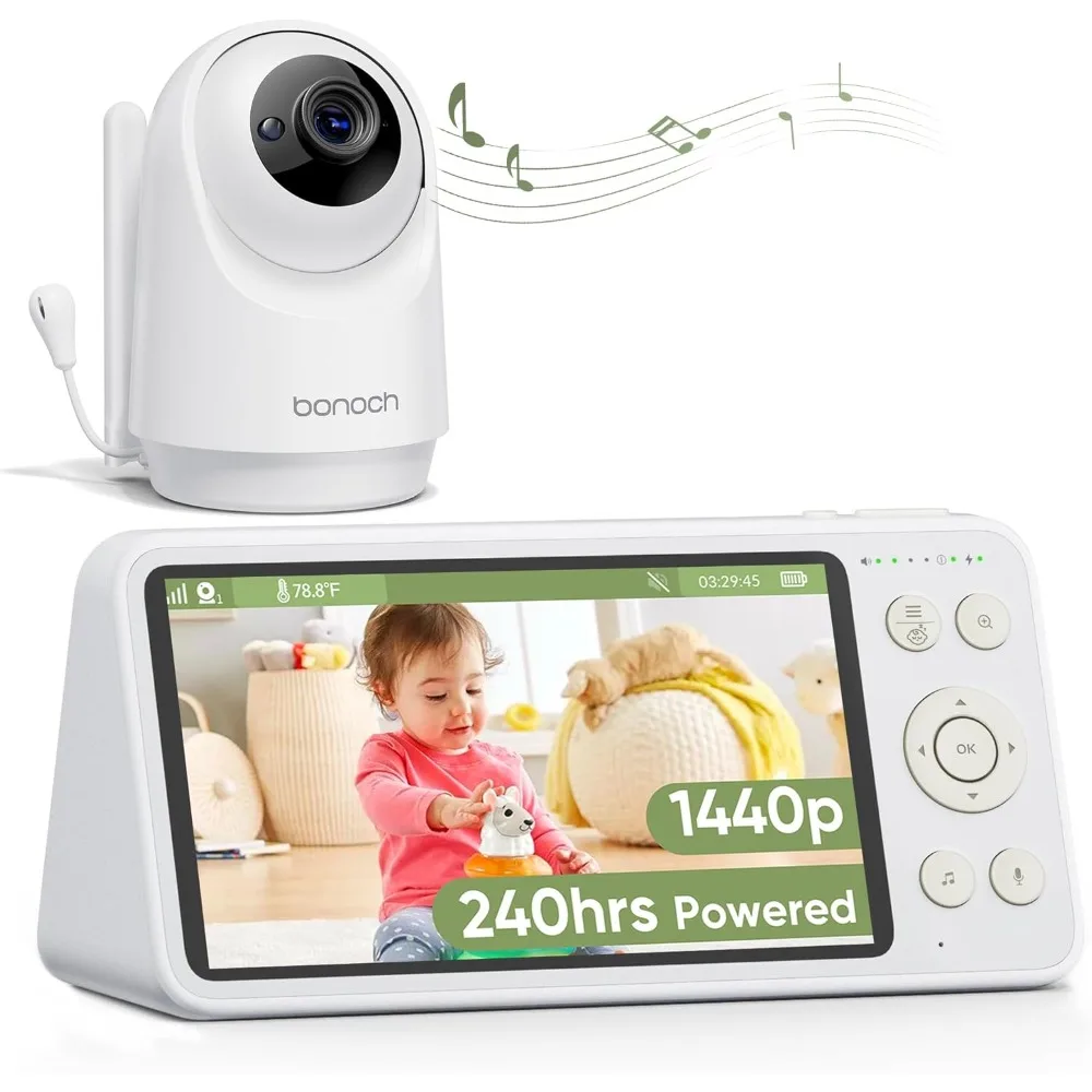 5.5" 1440p Baby Monitor with Camera and Audio, No WiFi Baby Camera, 240h Lasting, Smart Detect Sleep Turn Over/Cry/Motion, 7800