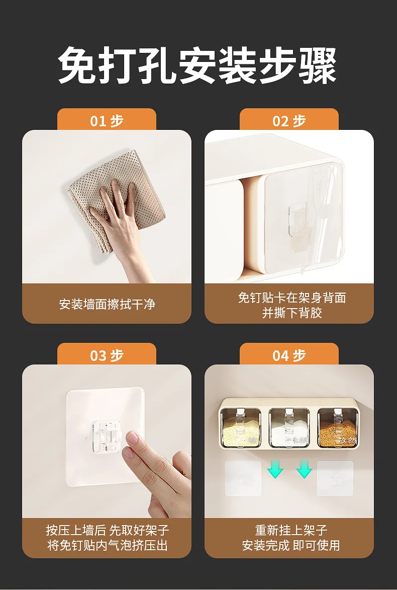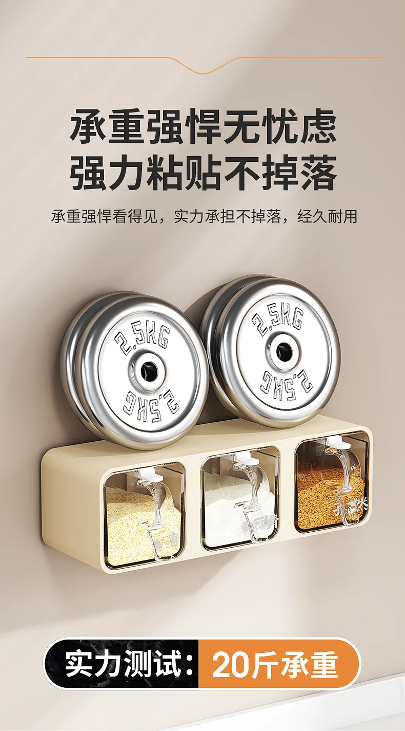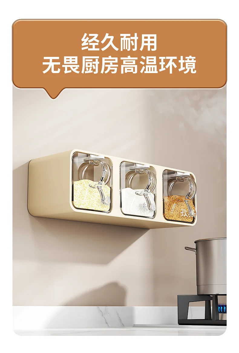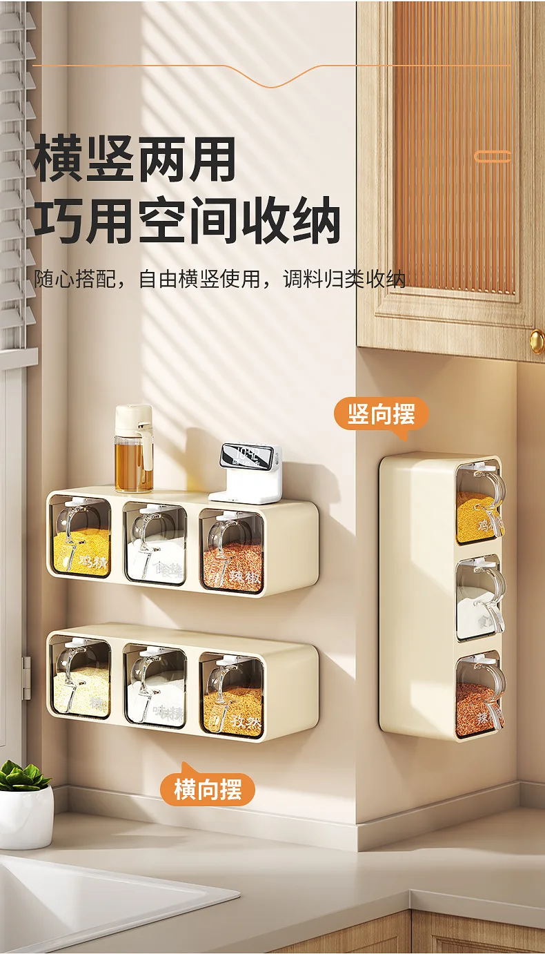 AOBT Wall-mounted moisture-proof seasoning box for home kitchen with condiment bottles for salt, MSG, and other condiments.