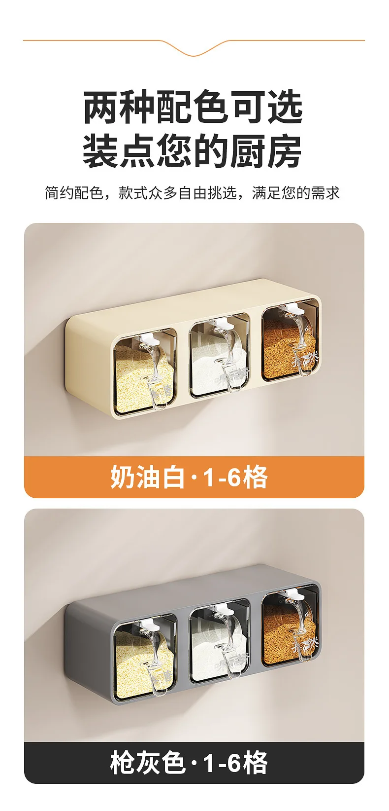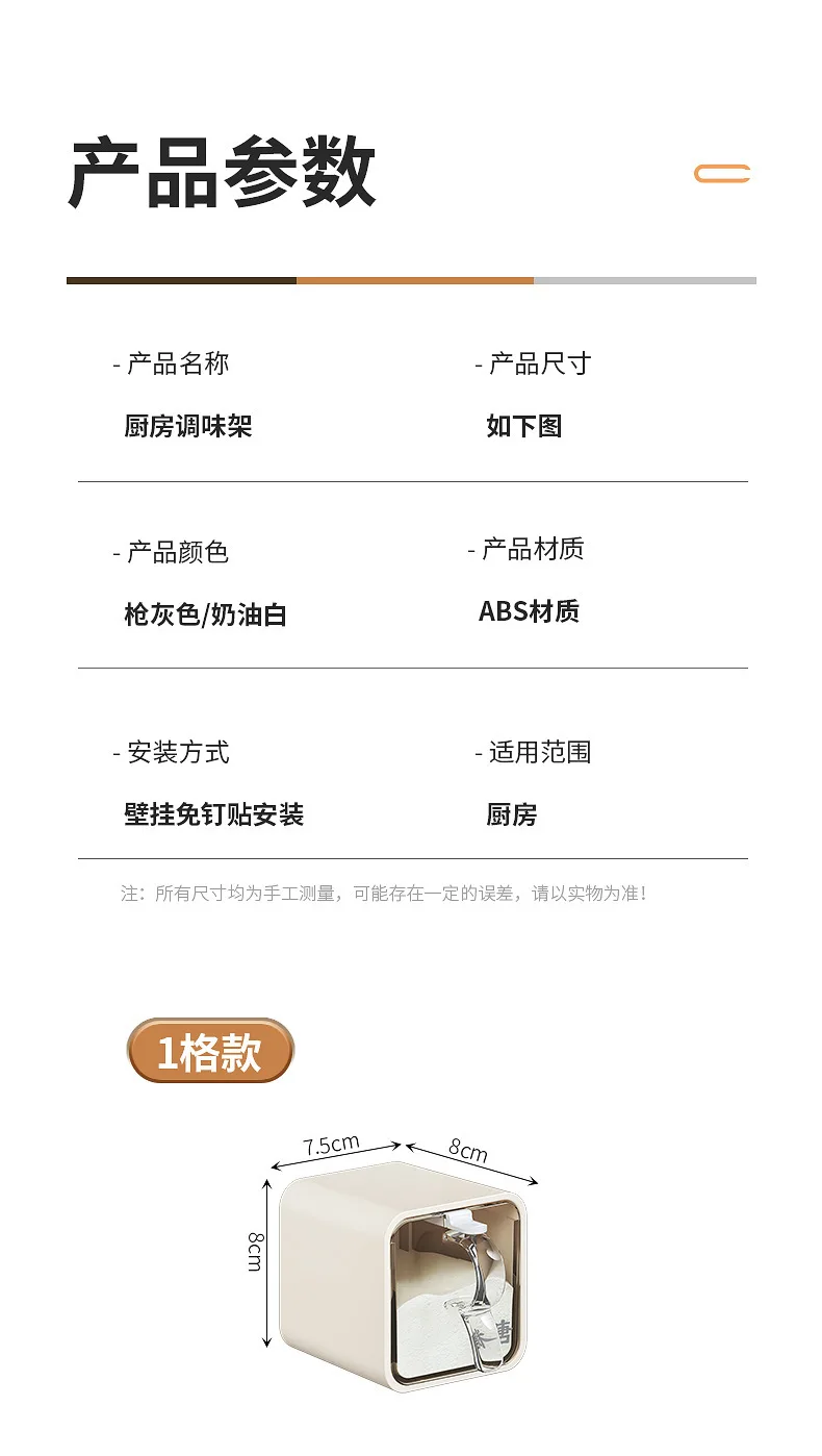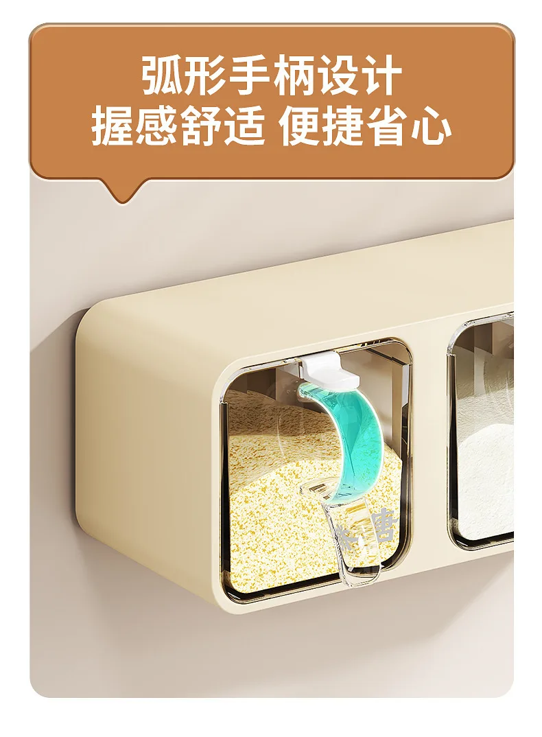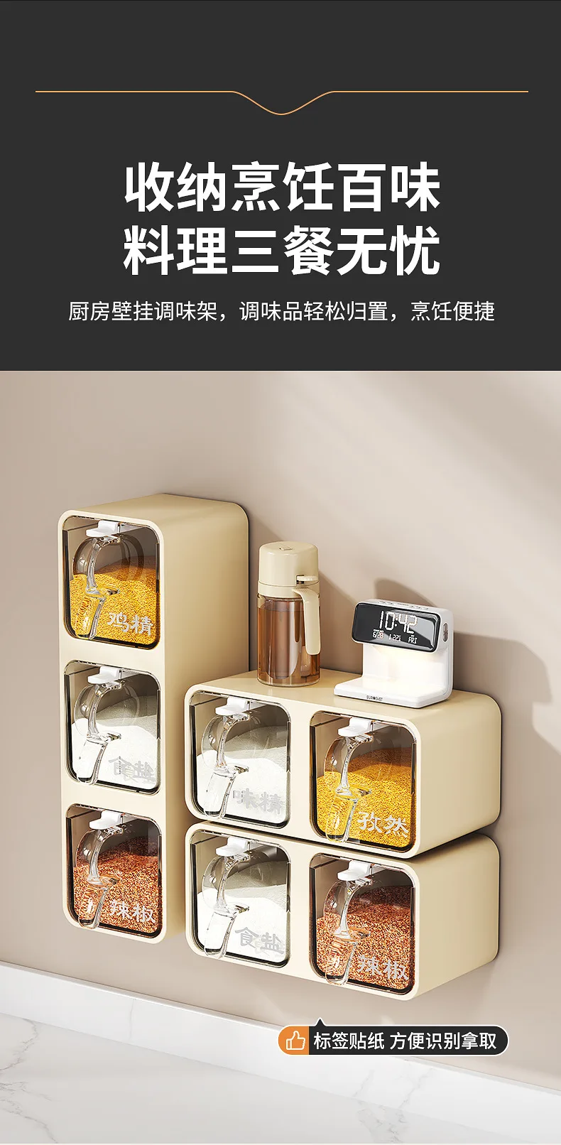 AOBT Wall-mounted moisture-proof seasoning box for home kitchen with condiment bottles for salt, MSG, and other condiments.