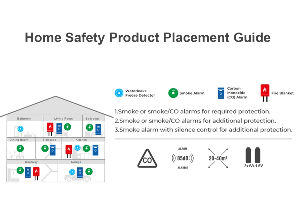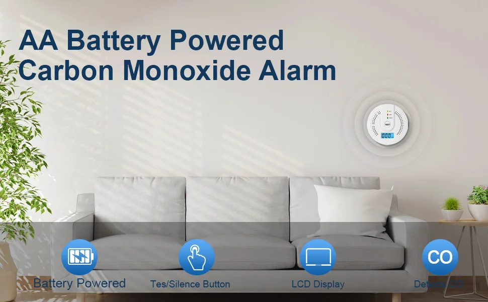 3.Easy to Install: The Carbon Monoxide Detector Alarm provides continuous monitoring of carbon monoxide levels to ensure your family's safety. It is easy to install, requires no wiring and needs 2 x 1.5V AA batteries (not included) to power it, so it can detect even in the event of a power failure