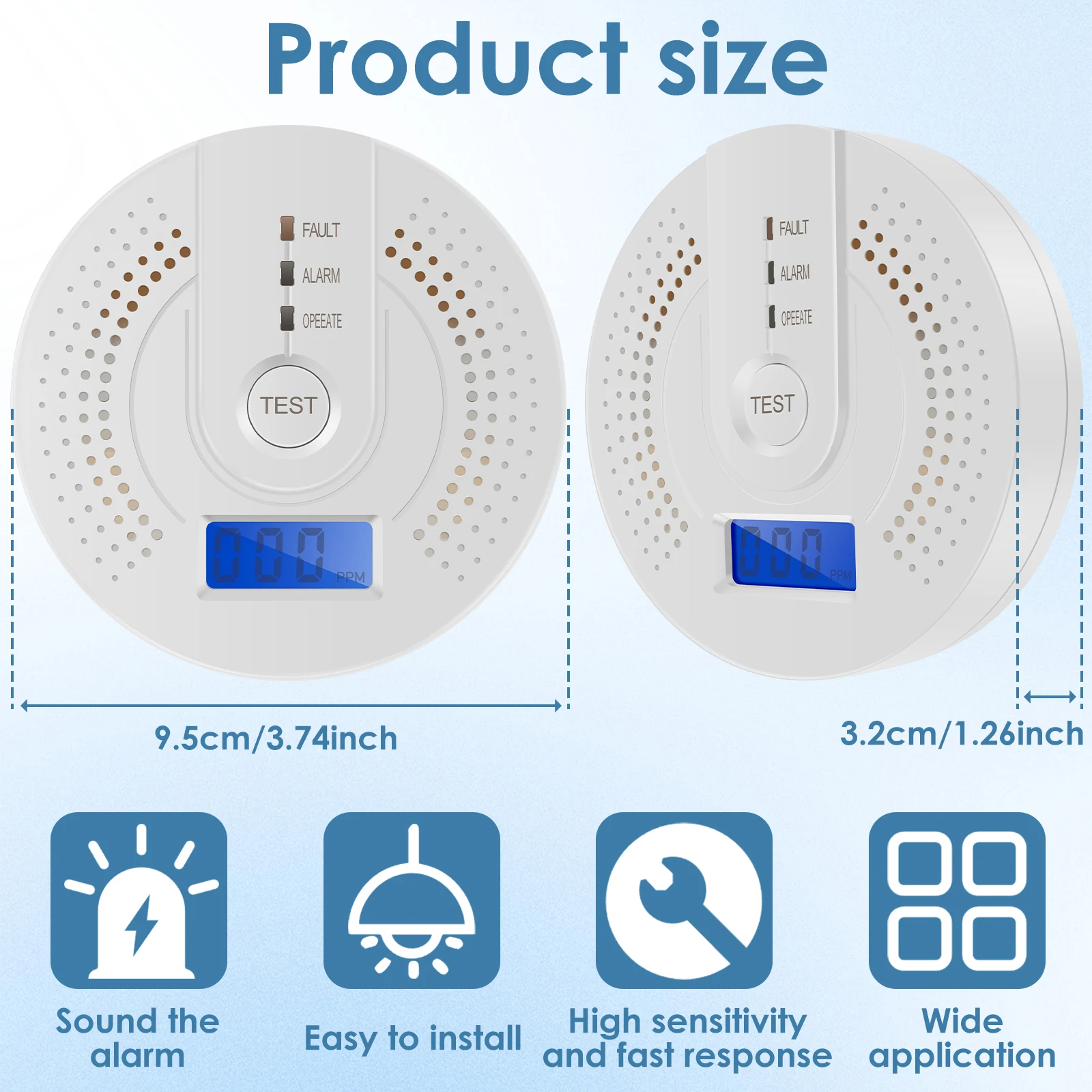 Carbon Monoxide Detector CO Gas Monitor Alarm ith LCD Digital Display AA Battery Powered CO Sensor Detector for Home,Depot,Test