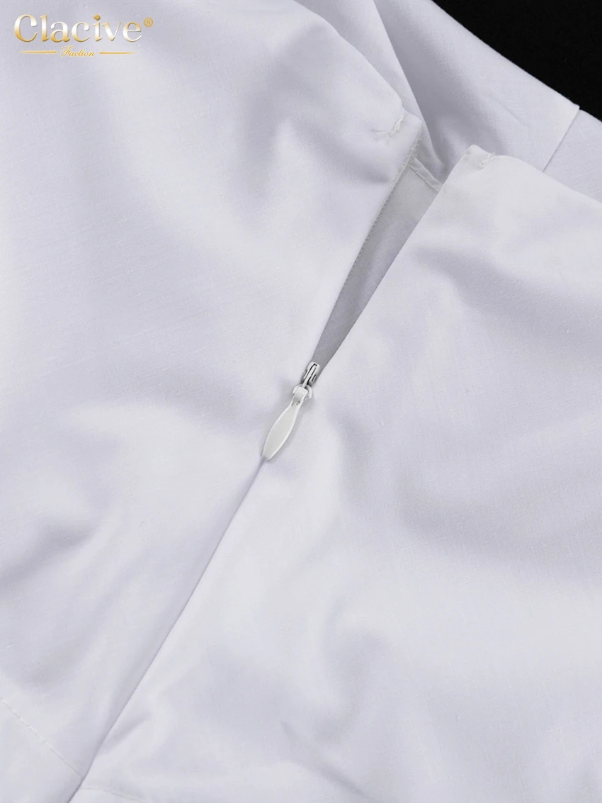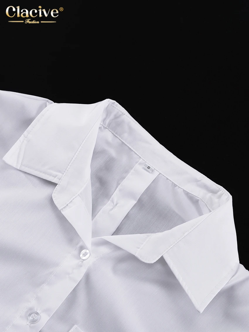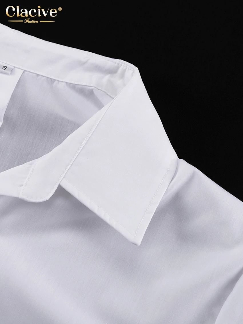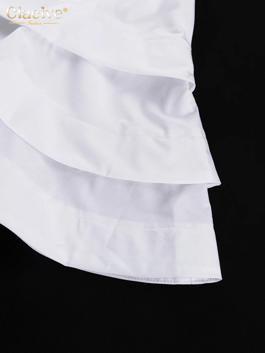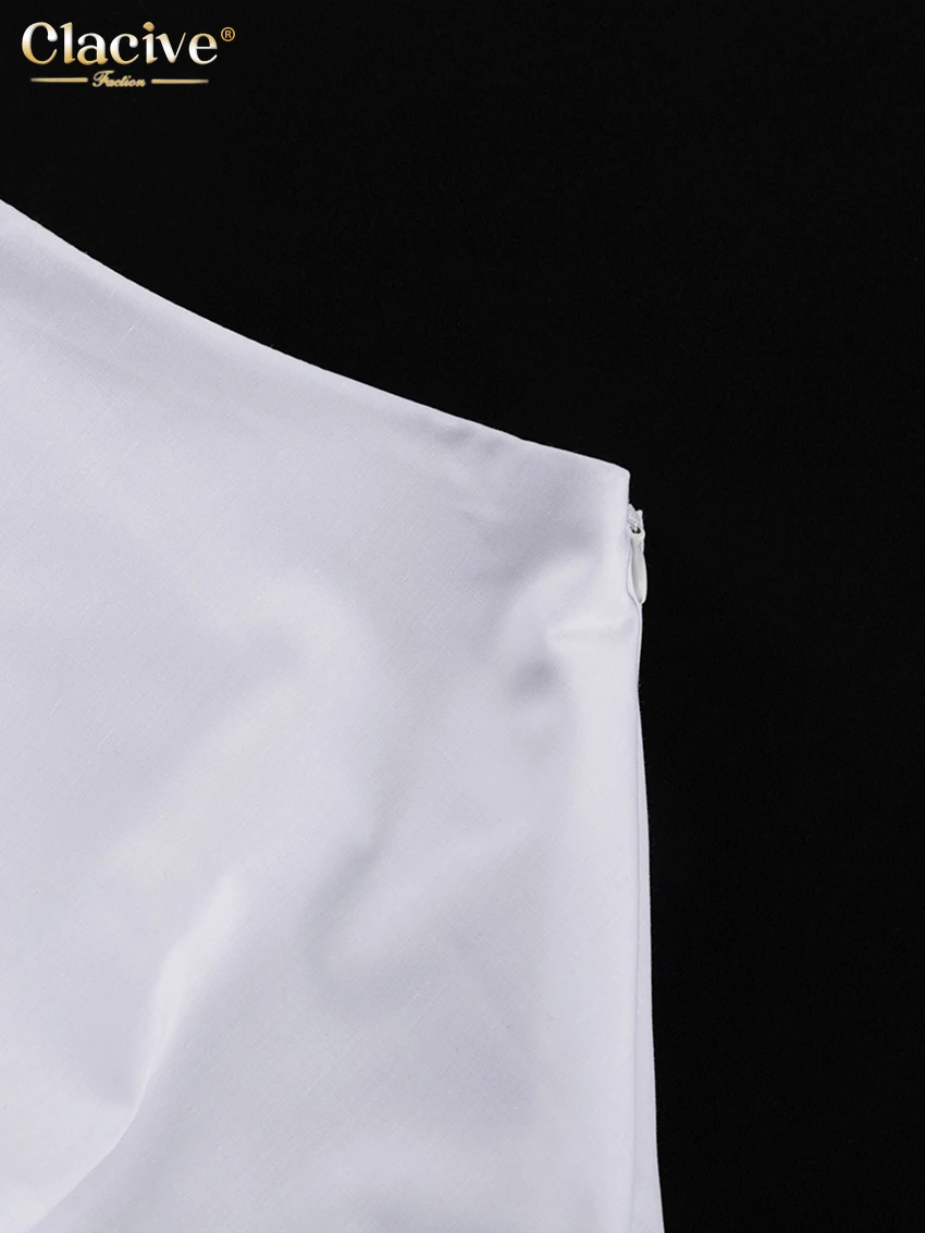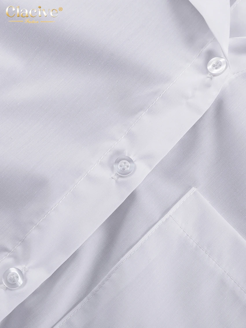 Clacive Fashion Loose White Cotton Women's Two Pieces Set 2025 Elegant Long Sleeve Shirt With High Waist Pleated Mini Skirt Set
