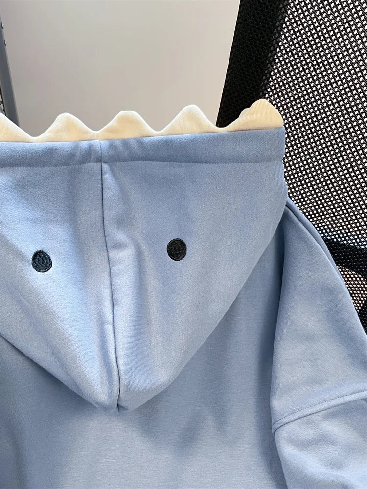 Hikigawa Chic Fashion Women Shark Hooded Sweatshirts Outerwear Autumn New Vintage Casual All Match Hoodies Coats Tosp Mujer