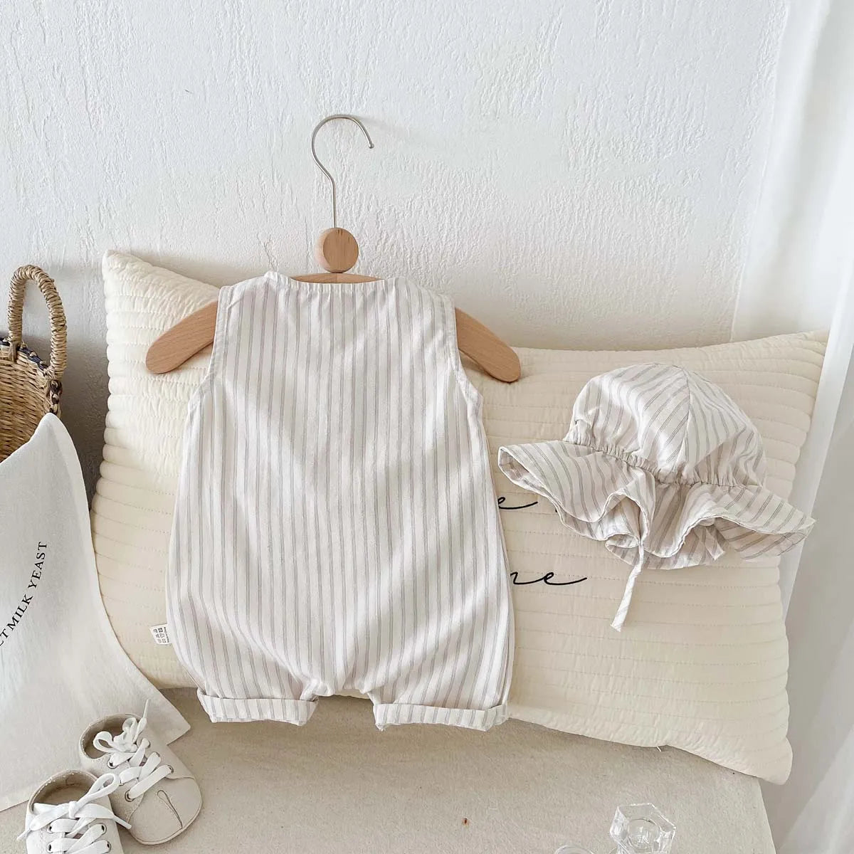Korean Style Newborn Bodysuit Striped Sleeveless Baby Romper with Hat Two Piece 0-24 Months Infant Onesie