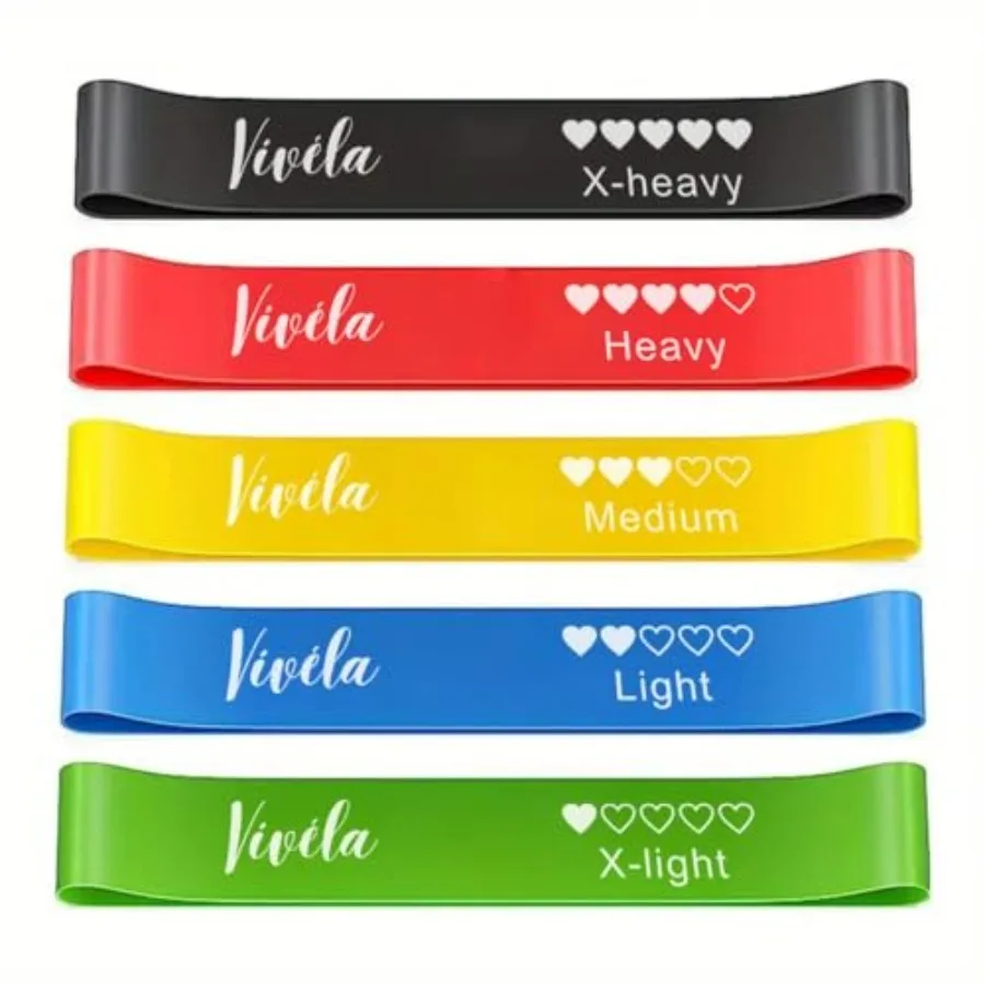- Package Contents: 5 Vivéla resistance bands with different levels, 1 storage bag and 1 manual . An instructional manual offering detailed guidance on using the resistance bands. It includes a variety of exercises with clear illustrations and step-by-step instructions, helping you to effectively target different muscle groups and maximize your workout benefits.