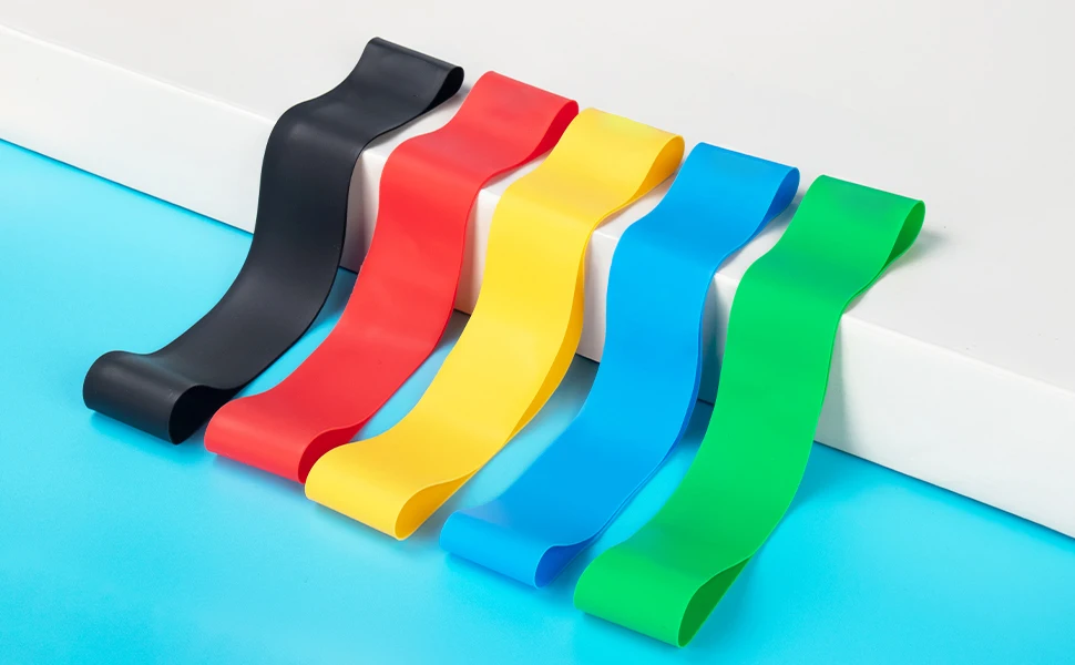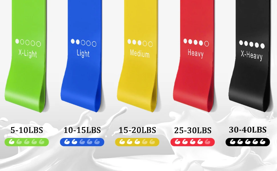 5 EXERCISE BAND LEVELS: The elastic bands have 5 resistance levels, each color has different resistance and width for different uses. You can increase the challenge by adding or reducing the slack in the bands and by combining multiple exercise bands.
