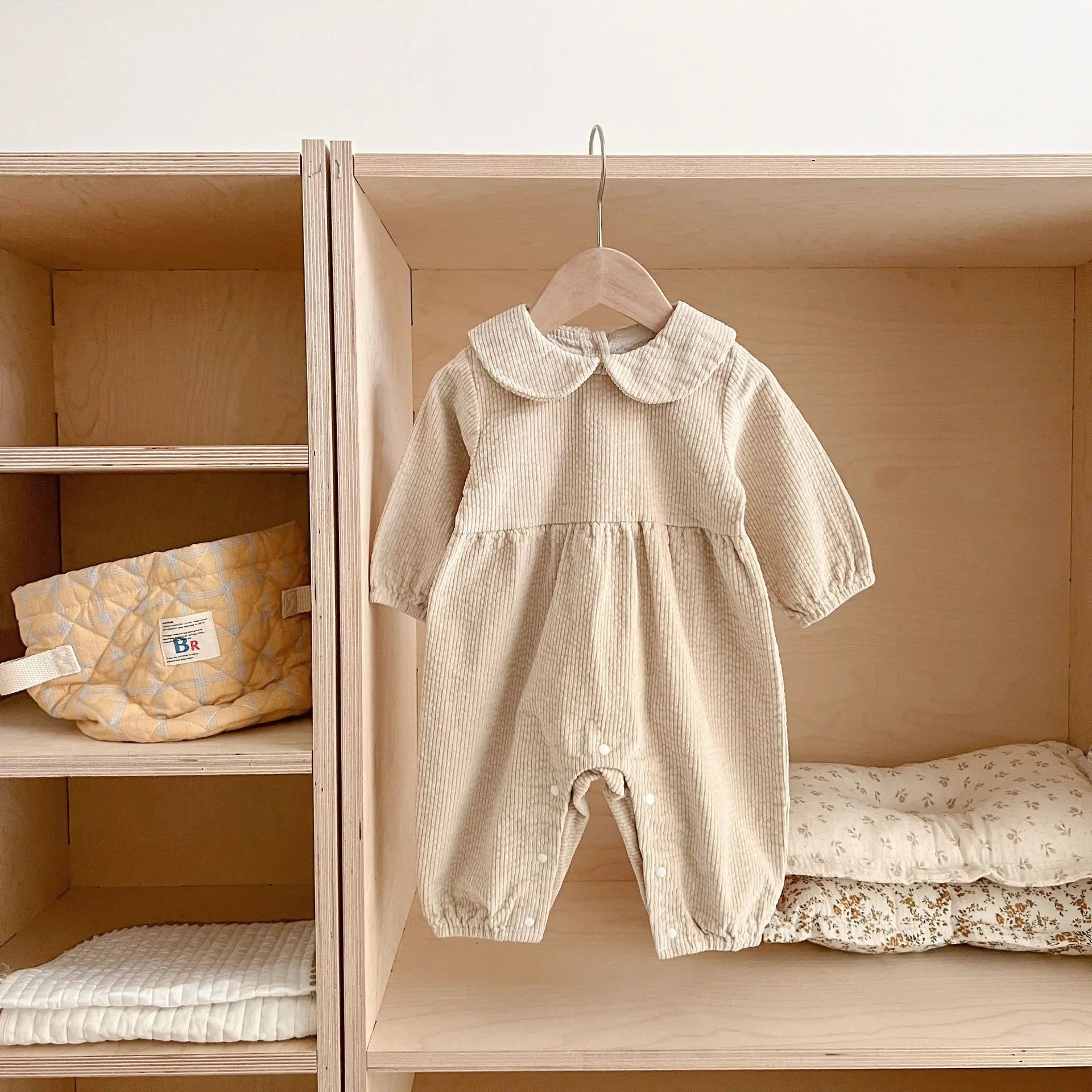 Spring And Autumn Newborn Infant Baby Boys And Girls Corduroy Romper Long Sleeved Rompers Kids Onepiece Fashion Baby Clothing