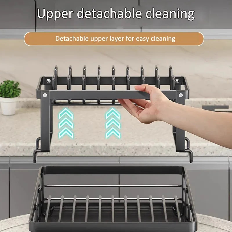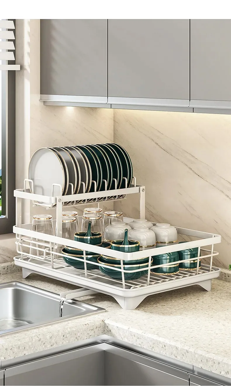 Organize your kitchen with this durable 2-tier stainless steel dish rack. Rust-resistant, heavy-duty, and space-saving.