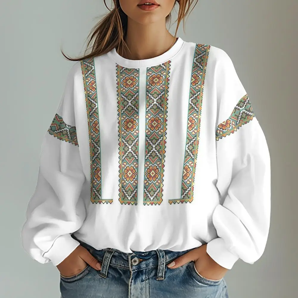 Ukrainian Embroidered Folk Print Womens Oversized Hoodie Long Sleeve Casual Pullover Warm Winter Fashion Streetwear Top
